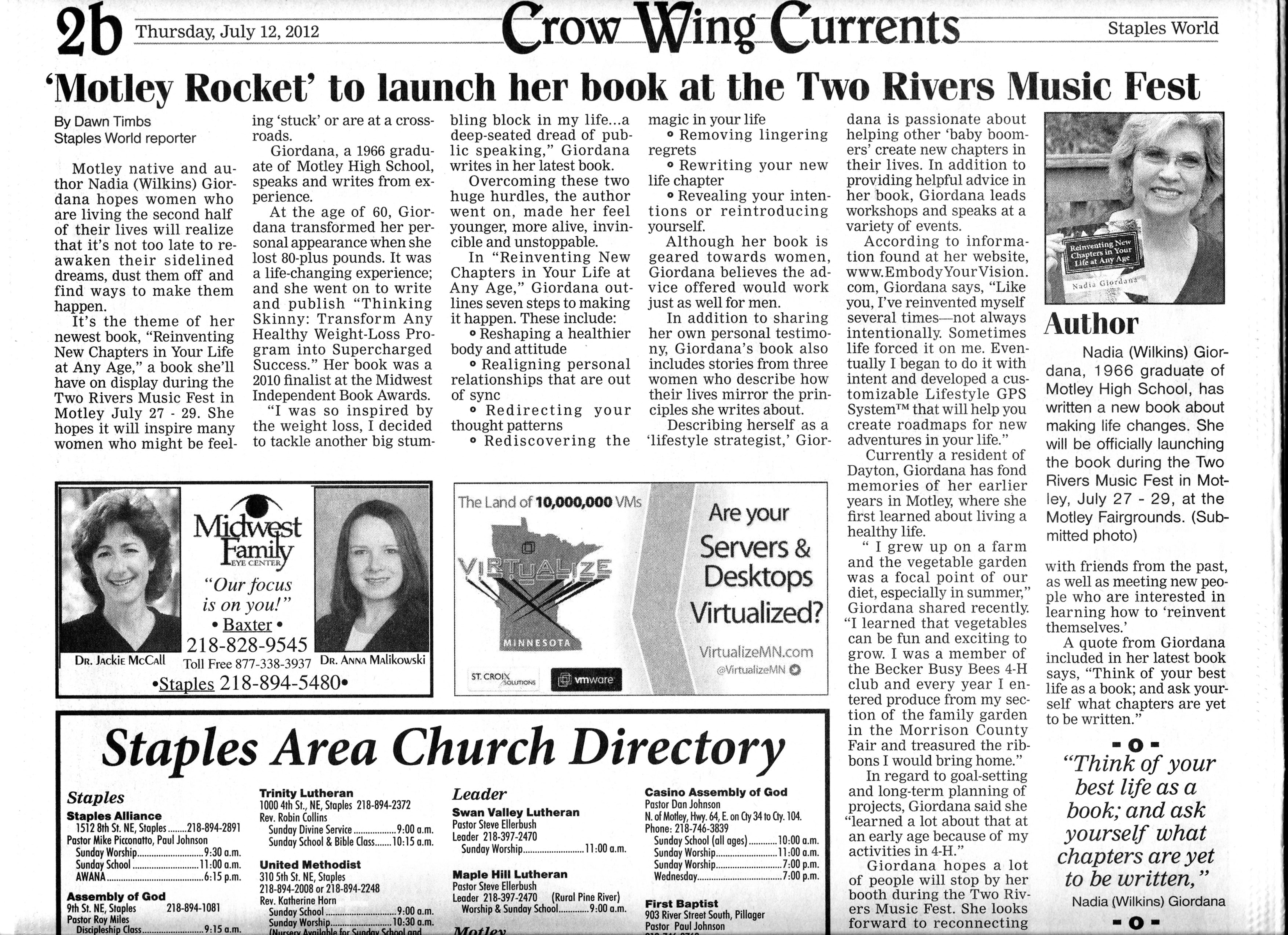 I have always been partial to my home town (who isn’t?) and it’s newspaper. Despite many other more modern choices to stay abreast of local news, the Staples World remains a cornerstone for the community and continues to thrive. I was immensely pleased to do an interview recently (scanned image below). To read it online, click here.